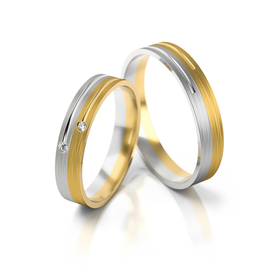 Die Eheringe Modell 223 aus der Linie „Klassisch“ stehen für eine harmonische Verbindung von Tradition und moderner Eleganz. Das edle Bicolor-Design aus Gelbgold und Weißgold schafft einen stilvollen Kontrast, der die Form der Ringe optisch unterstreicht und ihnen eine besondere Tiefe verleiht. Die fein satinierte Oberfläche der Mittelbahn wird von polierten Goldakzenten ergänzt und sorgt für ein ausgewogenes, hochwertiges Erscheinungsbild.