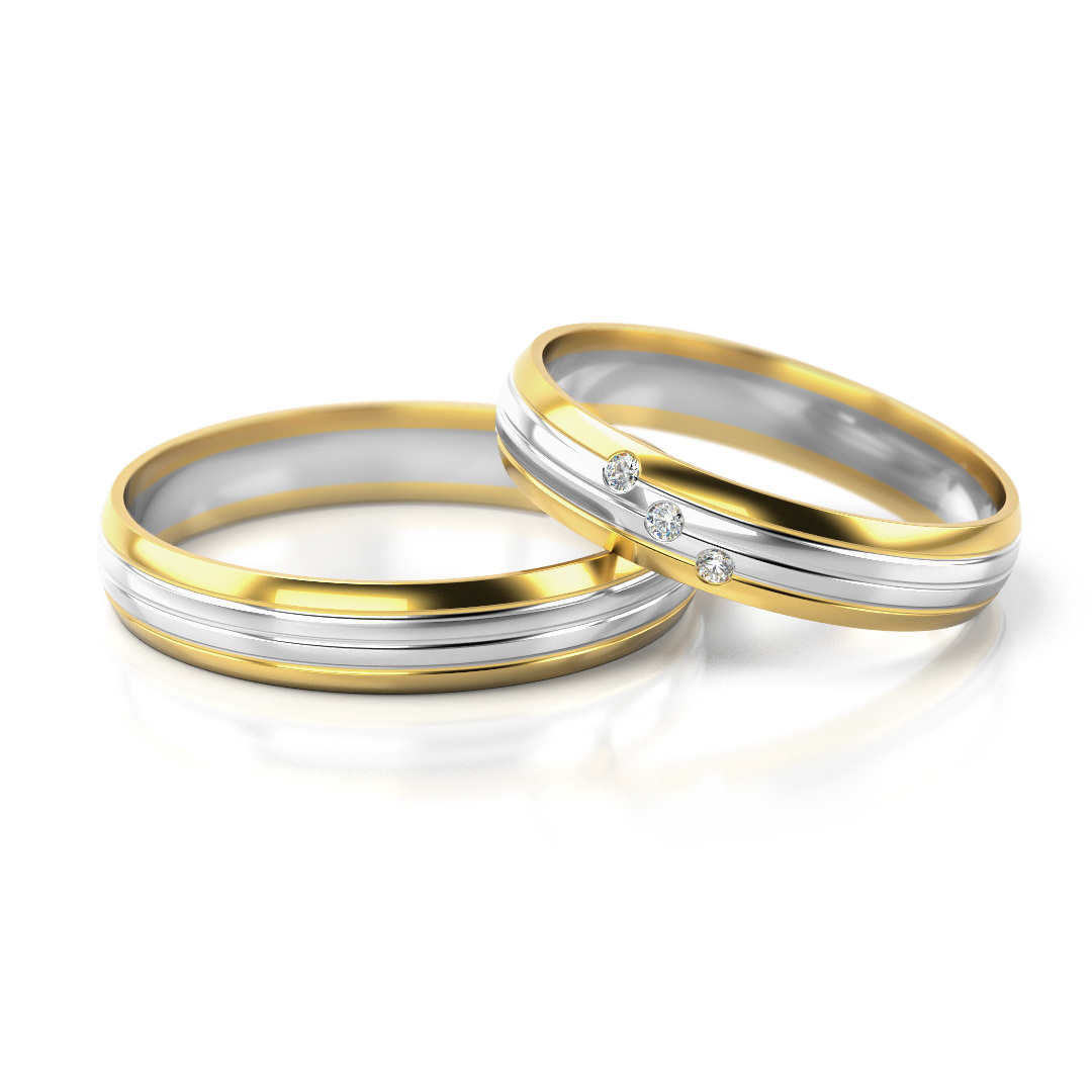 Die Eheringe Modell 238 aus der Linie „Klassisch“ stehen für eine perfekte Balance aus zeitloser Eleganz und moderner Raffinesse. Die harmonische Kombination aus warmem Gelbgold und kühlem Weißgold verleiht diesen Trauringen eine edle Bicolor-Optik, die sowohl traditionell als auch zeitgemäß wirkt. Im Damenring sorgen drei fein gefasste Brillanten für ein dezentes Funkeln, das die besondere Bedeutung dieses Schmuckstücks stilvoll unterstreicht.