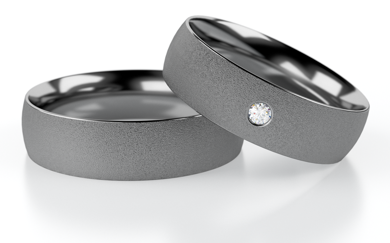 Die Außenseite der Ringe ist fein mattiert und bringt die charakteristische, tiefgraue Farbe des Tantals besonders schön zur Geltung. Im Kontrast dazu steht die polierte Innenseite, die für einen angenehmen Tragekomfort sorgt und einen edlen Glanz verleiht.