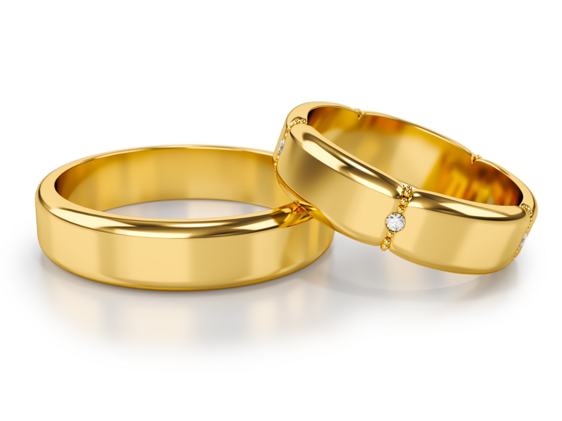 Romantische Trauringe Nr. 339 mit zartem Mittelstein und eleganter Linienführung. Der Damenring ist mit einem funkelnden Diamanten oder Labordiamanten verziert und symbolisiert Liebe, Nähe und gemeinsame Zukunft. Erhältlich in Gelbgold, Weißgold und Roségold.