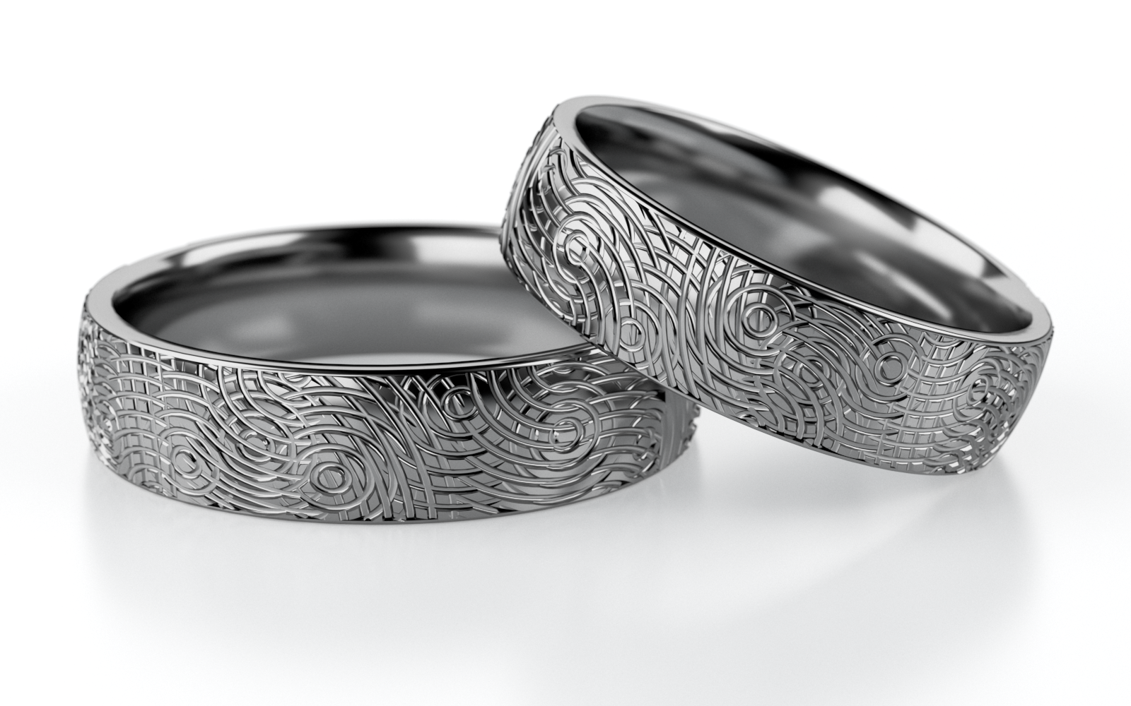 Das Modell TA05 kombiniert die Stärke und Tiefe des Tantals mit einer fein ausgearbeiteten, kunstvollen Gravur.