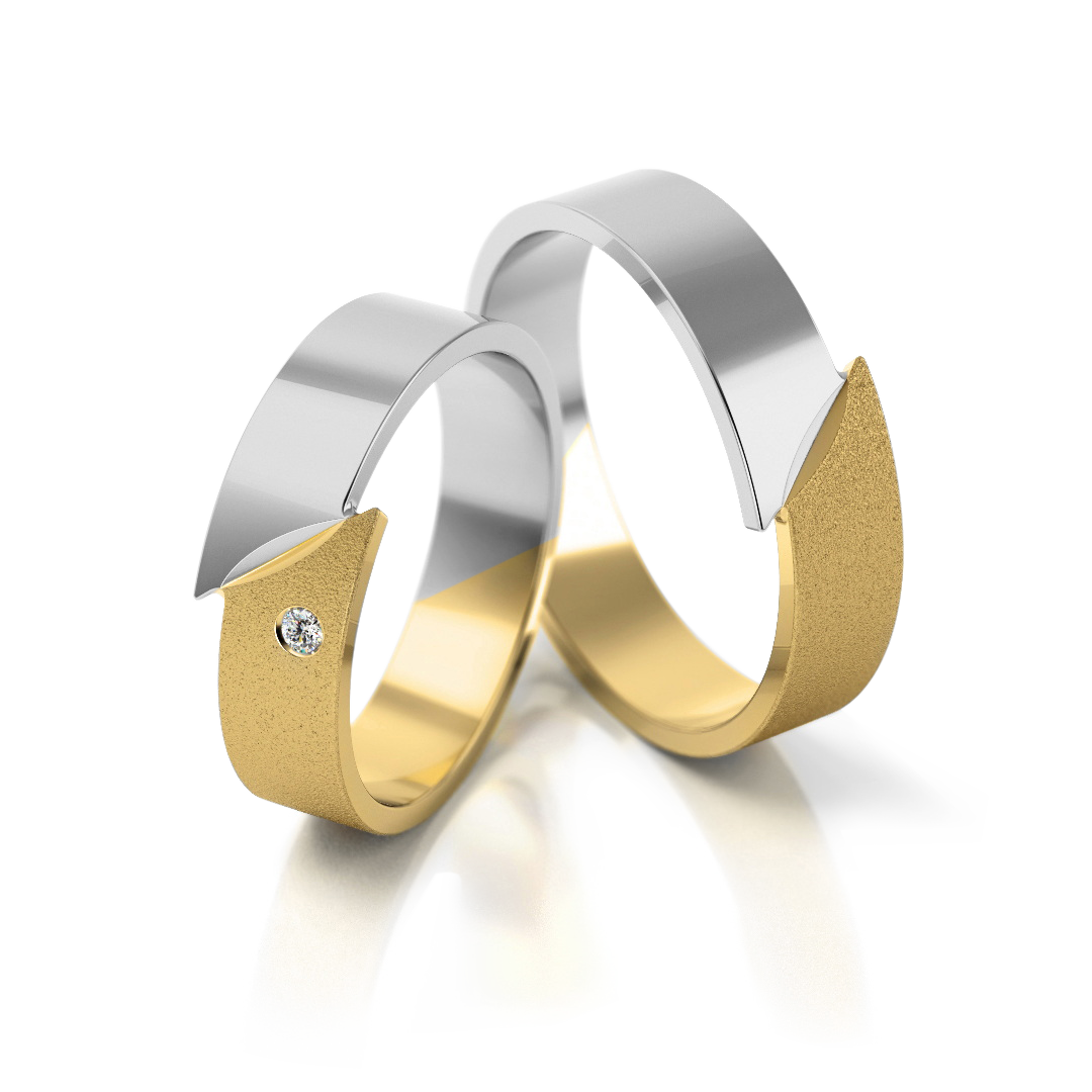 Die Ringe zeigen eine kontrastreiche Struktur: eine Seite glatt poliert, die andere fein mattiert – zwei Oberflächen, die sich berühren und ergänzen wie zwei Persönlichkeiten in perfektem Gleichklang.