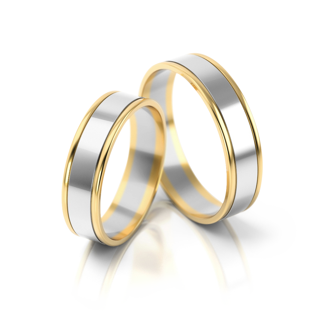 Die Eheringe Modell 74 stehen für schlichte Eleganz und zeitlose Harmonie. Das klare Bicolor-Design aus Gelb- und Weißgold wird durch eine glatte, hochglanzpolierte Mittelbahn in Weißgold stilvoll hervorgehoben. Die feinen Goldränder verleihen den Ringen eine edle Rahmung und unterstreichen den klassischen Charakter dieses Modells.