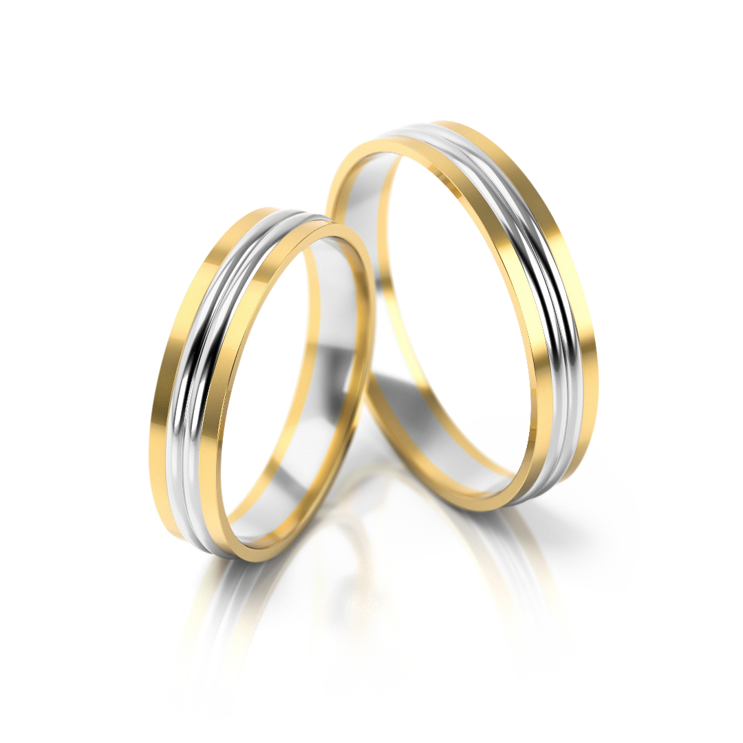 Dieses Modell ist in zwei Bicolor-Varianten erhältlich, bei denen Gelb- und Weißgold unterschiedlich angeordnet sind – so kann jedes Paar den Stil wählen, der am besten zu ihm passt. Die schlichte, polierte Oberfläche sorgt für ein elegantes Erscheinungsbild und angenehmen Tragekomfort im Alltag.