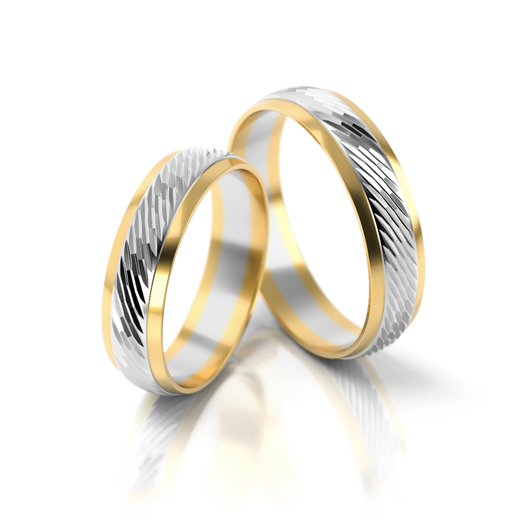 Trauringe Nr. 63 aus der Linie Klassisch überzeugen durch zeitlose Bicolor-Eleganz in Gelb-Weißgold. Klare Linien, strukturierte Mittelbahn und hoher Tragekomfort machen sie zu perfekten Begleitern fürs Leben.