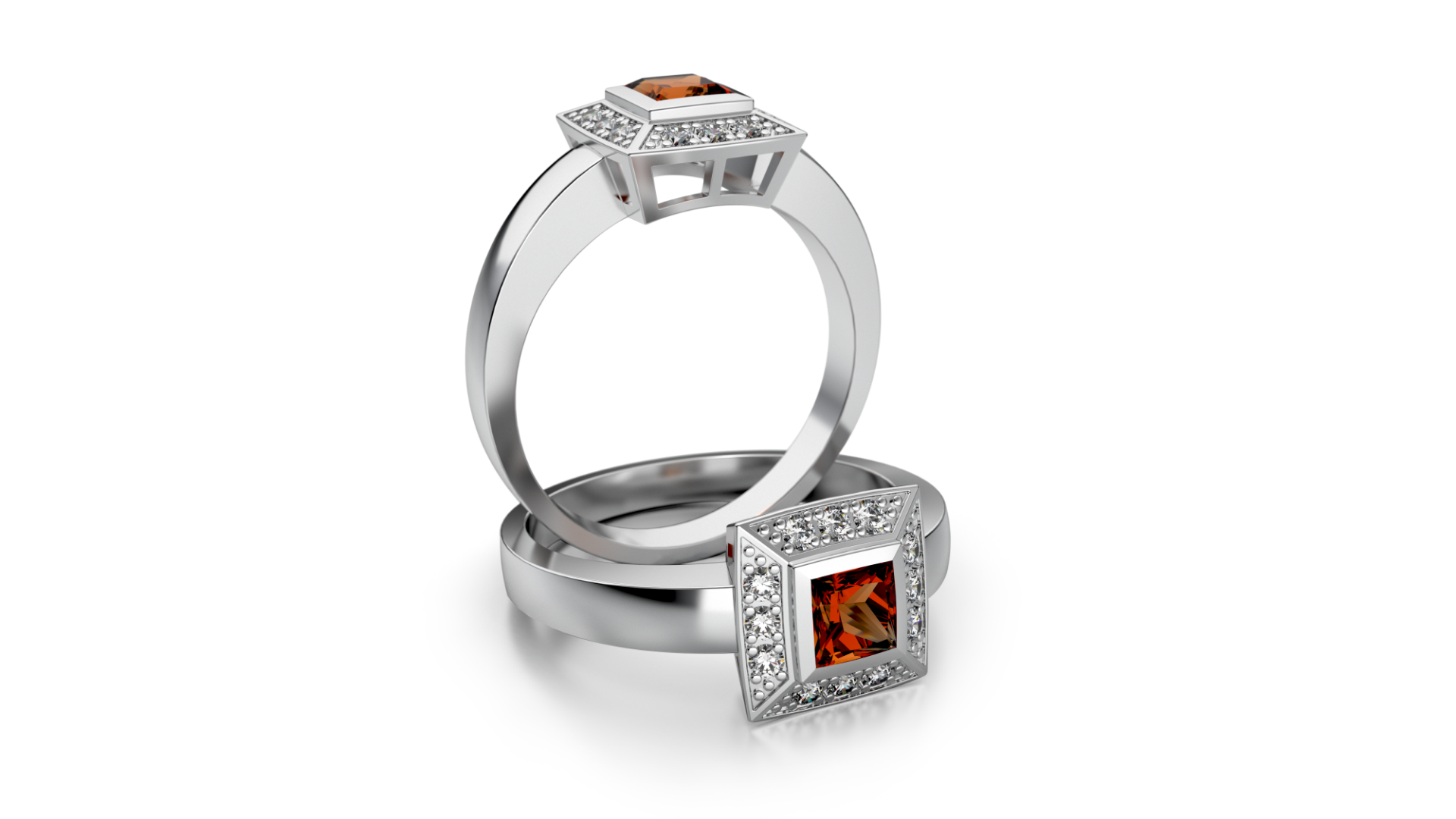 Der Verlobungsring ST17 aus Weißgold vereint zeitlose Eleganz mit einer warmen, ausdrucksstarken Farbwirkung. Im Zentrum befindet sich ein Granat in der Größe 4×4 mm, dessen tiefroter Farbton dem Ring eine besondere Tiefe und Charakter verleiht. Funkelnde Diamanten ergänzen den Zentralstein und sorgen für ein ausgewogenes, edles Gesamtbild.